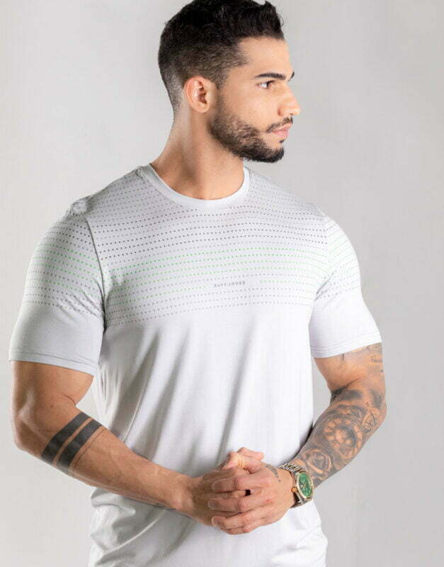 Edição Limitada com estampa estonada, produzida no algodão PIMA na malha 40.1, um tecido mais leve e gostoso de usar, perfeito para dias mais quentes