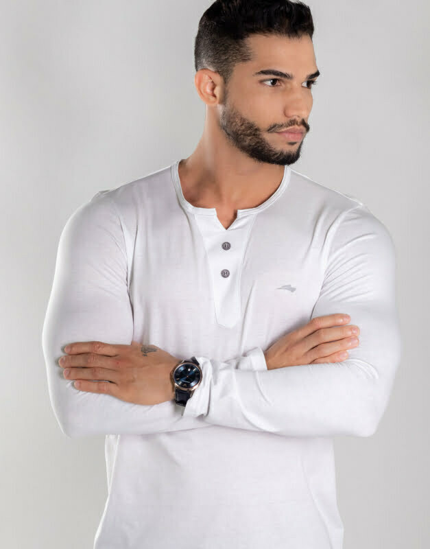 Modernizamos o visual dessa peça icônica henley, deixando um modelo mais versátil que pode ser usado em qualquer ocasião.