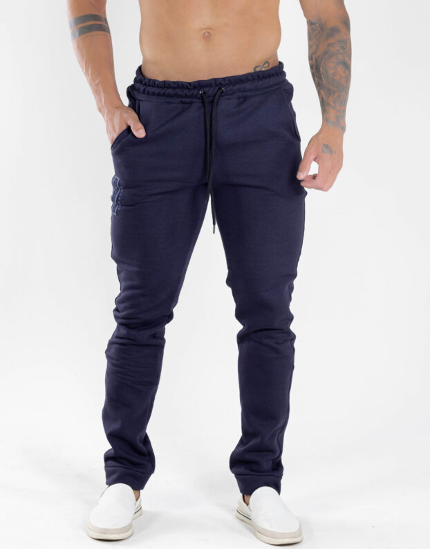 Calça de Moletom, com Elástico Regulável no Cós e nas Barras da perna. Bermuda na cor Azul Marinho, moletom 100% Algodão.