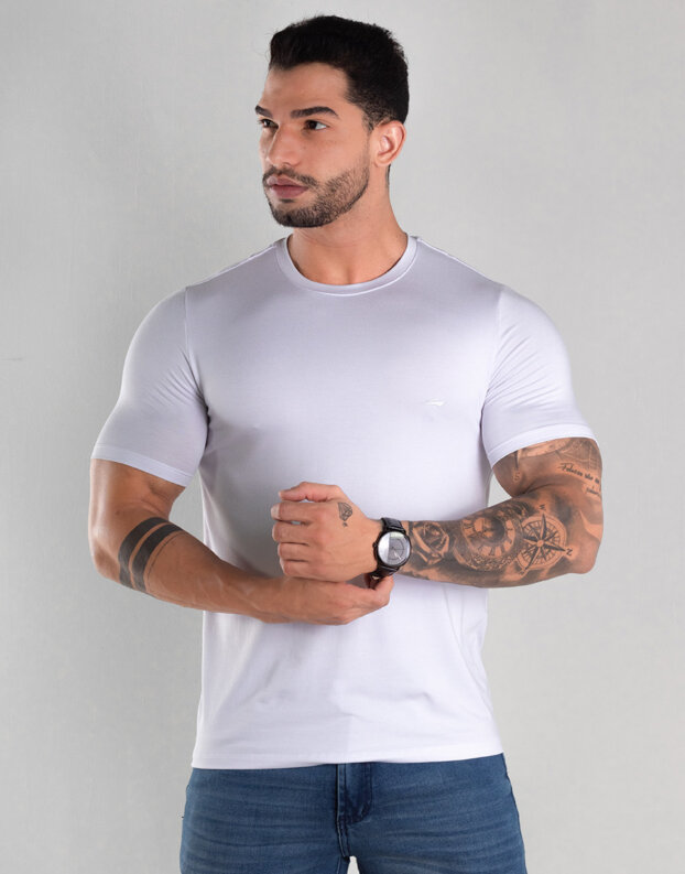 Camiseta gola o básica masculina, malha com toque super macio com elastano que dar a modelagem perfeita, viés de acabamento na gola e preposto na gola e ombro, o melhor básico do Brasil.